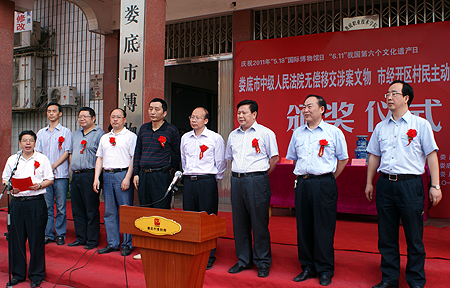 今年5月18日是第35个国际博物馆日,今年6月11日是我国第6个文化遗产日。为纪念这两个特殊日子,市文化局、市文化管理处、市博物馆于5月18日联合举行了庆祝活动及“涉案、出土文物移交上缴”颁奖仪式。副市长鄢福初,市中级人民法院院长王建成,市经开区、市文化局、市博物馆部分领导出席,我院师生40余人应邀参加了此次活动。