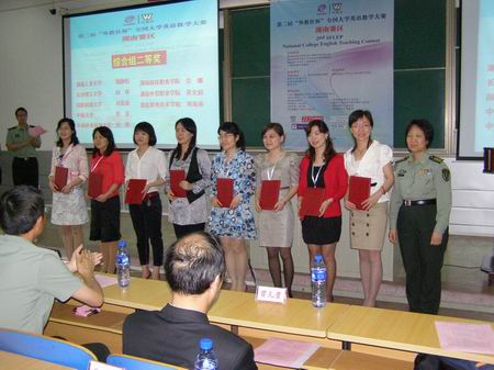 由教育部高等学校外语专业教学指导委员会、教育部高等学校大学外语教学指导委员会和上海外语教育出版社共同主办的第二届“外教社杯”全国大学英语教学大赛湖南省赛区比赛5月15日在国防科技大学落下帷幕。我院外语系教师邓海燕过关斩将、杀入决赛,最终取得综合组二等奖的佳绩。