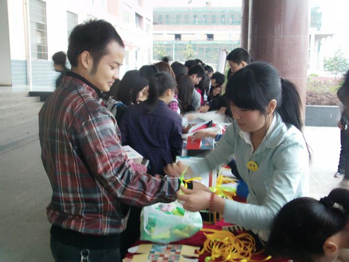 本次活动是把富有爱心的广大学子以义捐的形式所捐赠的物品出售,将卖来的资金无偿捐献给娄底市红十字基金会。由财贸系优秀团员青年组成的义卖志愿者们笑容满面的积极投入到活动之中,来往的人群络绎不绝,院学工处长张一军、财贸系学工主任刘媛以及我院辅导员、老师等也到现场选购物品,参与此次活动。