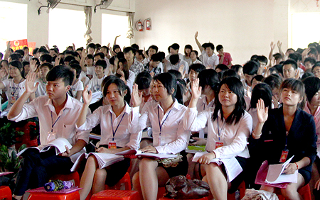 在工作人员宣读完第三届团委会委员、学生会委员候选人简介后,与会代表开始无记名投票。最终,大会选举产生了第三届团委委员24名,选举产生了第三届学生委员会委员22名。第三届团委会第一次委员全会选举欧芳同志为院团委第三届委员会书记,第三届学生委员会第一次委员全会选举王纬同学为院学生会主席。