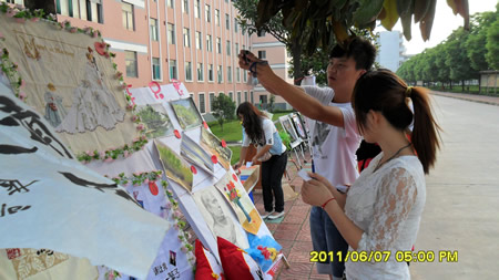 6月7日,在行知路,农林系举办了寝室文化月之寝室文化作品展。本次活动赢得了广大同学的积极响应和热情参与,同时也得到系部领导的高度重视与大力支持。经过一个月的时间,共收集优秀作品几十件,包括十字绣、手工编织、字画、剪纸等。