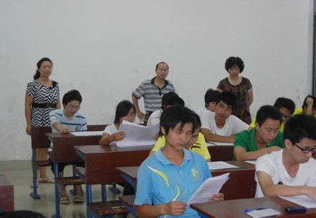 期末考试临近,为了严肃考纪、营造一个良好的考试环境,6月19日晚电信系组织参加期末考试的19个班级的730多名学生进行了“诚信与考风考纪”测试。测试由各班辅导员和系学生会干部担任监考员,系党支部书记吴莲贵带领教学副主任谢完成、教学干事禹云巡视了各个考室的布置和组考情况。考试结束后,各班接着举行了“诚信考试,杜绝舞弊”的主题班会,辅导员结合试题进行现场讲解,要求全体学生做到:思想重视不懈怠;珍惜时间不浪费;复习全面不疏漏;心态平和不焦躁;考试诚信不舞弊;充满自信不气馁。以优良的成绩向培养和教育自己成才的家长和老师交上一份满意的答卷。(电信系)