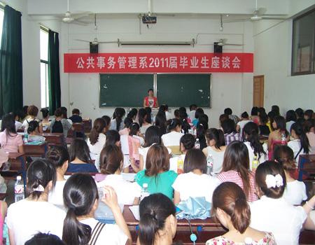 对于所有大学生来说,毕业这一天既是一个完满的结束,又是一个美好的开始。7月5日下午,公共事务管理系08级全体毕业生在雷晚蓉主任的主持下,于主教楼114教室召开了2011届毕业生座谈会。系主任雷晚蓉、副主任李海莉、学工主任朱勇志、刘建才老师、罗华老师、邱智鸿老师等出席了本次会议。