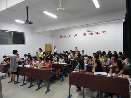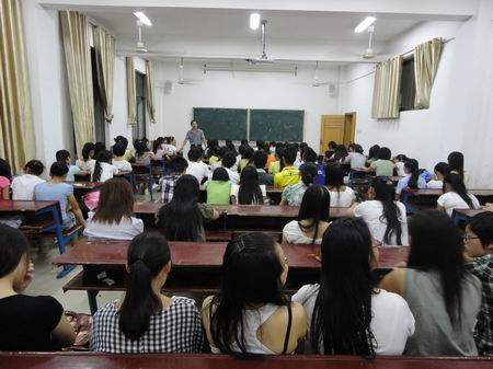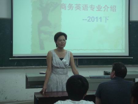9月4日晚8:30,外语系11级应用英语专业教育讲座在主教学楼417教室举行。讲座由系主任刘燕主讲,学工副主任贺建良、教学副主任肖付良、辅导员杨益、代理班主任参加,所有11级应用英语专业学生认真聆听讲座。