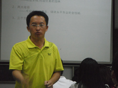 主411室,曾玉华老师在讲座中系统的为新生们介绍了园林专业。首先,他给大家介绍了什么是园林,并对园林专业进行解剖,分别对园林工程技术与园林规划方向做了专业的发展前景分析,完整的为同学们对园林专业的就业渠道和就业方向作了解答。还为新生作了一套详细的职业生涯规划参考,这对我们初入校园的新生们起到了一个很好的引导作用。最后,他将一套完美的教研处人才培养方案呈现在大家面前,大家用热烈的掌声感谢曾老师富有激情的专业介绍,也表达了自己对学好专业的信心。