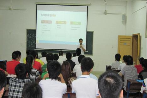 9月1日至9月3日,东宝公司委派市场部经理张玉钢来我院参与软件专业东宝订单班的宣传、咨询工作。根据要求,东宝订单班培养的学生是既懂行业标准又能进行实践操作的专业技术型人才,学生不仅要学东宝软件特有的知识和技术,还要学习相关行业的基础知识。教学案例来自企业,因此学生在学校所学的知识和技能最贴近企业要求,这不仅缩短了企业培养员工的周期,同时,也缩短了学生职位提升的周期。优秀的学生除了享有学院的各类奖学及助学金外,还可以享有企业的特别奖学金。2011年,软件技术专业本年度招生人数达到了65人,比预期目标翻了一倍。东宝公司渴求人才,未来1年各类岗位的人才缺口是:5名分公司总经理,15名分公司经理,20名优秀软件开发工程师,15名分公司经理助理,30名销售主管,30名技术主管,60名专业销售顾问,60名专业实施顾问,60名专业技术工程师,100名专业销售专员。