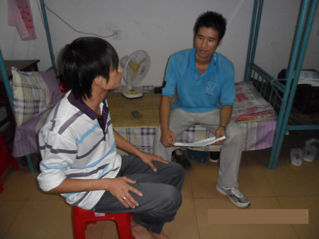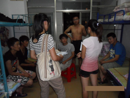 学生党员们根据寝室分为十个小组,利用每天的课余时间到新生寝室,为他们介绍相关专业知识,安抚浮躁想家的情绪,宣传关于抵制推销、防止受骗的知识,讲解介绍校园硬件软件设置,并且叮嘱他们做好防晒防暑措施。