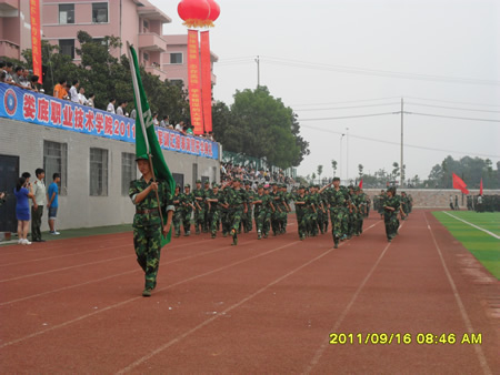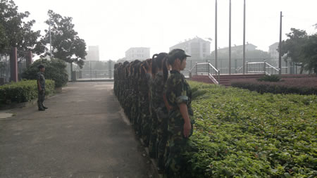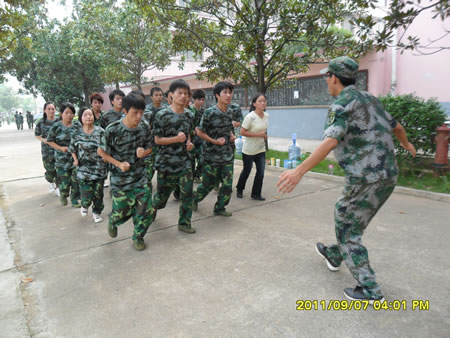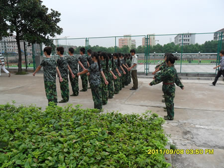 训练是严格的,教官讲解动作要领以后,学生们要反反复复地训练,每一个动作都要到位:行进时脚步有没有统一,摆臂有没有在同一水平线,队伍有没有倾斜,这不仅是对个人动作规范与否的检验,更是对这支队伍的凝聚力的考验。这群来自五湖四海的学子们,口音不同,性格各异,但是经过这几天的军训,大家一起经历日晒雨淋,一起流汗,一起承受身心的疲惫,一起为集体努力,心与心的距离却拉得更近了。