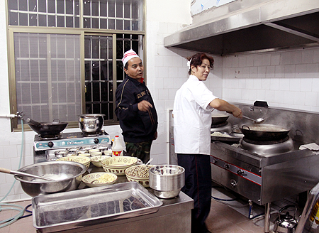 安顿好行李,院领导还陪同学员们一起来到特设的清真食堂,全新的餐桌椅、厨具、餐具、空调、液晶电视等,又让学员们深感惊讶。尤其是特意从新疆请来的厨师夫妻阿不都热苏力•热依木和哈力旦木•买买提端上熟悉的拉面、手抓羊肉、清茶时,学员们脸上写满了感激与满足。领队夏庆国与辅导员祖合热•依米提握住我院领导们的手,不停地说“谢谢你们,安排得太周到了”。