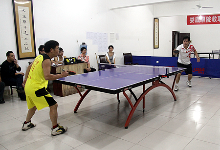乒乓球协会会长彭林告诉记者,此次比赛是今年6月9日乒乓球协会成立以来举办的第一场比赛,也是我院教职工首届乒乓球比赛,大赛以锻炼全院教职工身体,丰富全院教职工业余生活,在校园内形成热爱运动的氛围为宗旨。