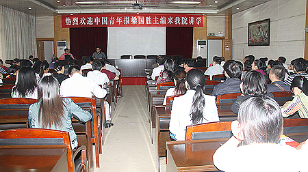9月29日,中国青年报职业教育版主编、新闻事业部副主任梁国胜来到我院,在主教学楼报告厅为我院师生作了题为《高职教育新闻眼》的讲座。陈立楚、杜祥培、龙伟、袁其谦、郭广军等院领导出席讲座,我院中层干部及各部门宣传信息员、院报、广播站学生记者、新闻班学生近200人聆听了讲座。杜祥培主持讲座。