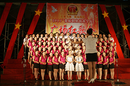 青春娄职,群英争妍。9月29日晚,由我院团委、学工处主办的“红歌飞扬,红心向党”广场红歌会在文化广场隆重举行。副院长周意坚、刘自斌、纪委书记邹松建、工会主席曾国基、正处级干部向右铭、学工处、团委的全体工作人员、各系学工主任、新生班级辅导员与我院2011级全体新生观看了盛会。