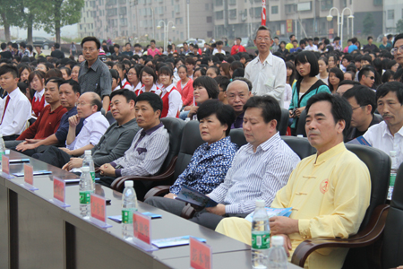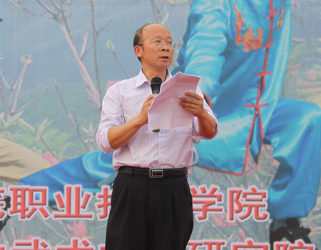 刘自斌为演出致辞,他指出,我院是国家骨干高职院校建设单位,高校的内涵要通过校园文化来体现,文化力是高校核心竞争力的核心。在校园文化建设中我们需要融入地方优秀文化,以此推进我院特色文化建设的进程。他号召我院全体学生做先进文化的传承和创新者,积极支持,广泛参与,弘扬民族精神,强身健体,全面发展。