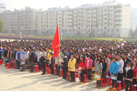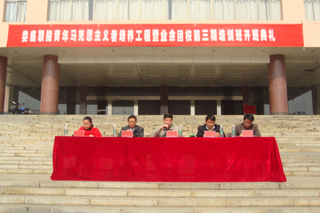 11月11日12点30分,我院“青年马克思主义者培养工程”暨业余团校第三期培训班开学典礼在文化广场举行。我院党委委员、副院长刘自斌、共青团娄底市委副书记朱石牛、共青团娄底市委学校部部长李建生、我院学工处处长张一军、院团委书记欧芳出席典礼,各系部学工主任、团总支书记与1686名学员参加了此次开班典礼。欧芳主持此次开班典礼。
