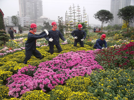 11月13日,为开拓同学们的眼界,增长知识,农林系09园林班廖星、欧晶晶、李卫等同学在景来园林公司总经理罗少华的带领下,和景来的青年员工,一同来到湘潭东方红广场观赏菊花展览。