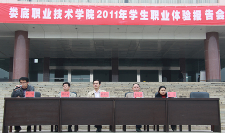 为进一步提高我院学生对大学生职业生涯规划和就业指导工作的认识,激发和培养学生的专业意识、职业意识、专业实践能力和创新精神,提前零距离感受企业文化和企业精神,增强就业能力,今年我院有将近2000名同学参加了暑假职业体验活动。11月17日,我院隆重举行2011年学生职业体验专题报告会。院长杜祥培、副院长刘自斌、招生就业处处长朱存斋、学工处处长张一军、院团委书记欧芳出席了开幕式。各系部老师、学生聆听了报告会。报告会由张一军主持。
