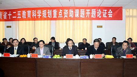12月3日下午,我院省十二五教育科学规划重点资助课题《2011-2018年湖南高考生源变化与地方高职院校招生策略研究》在招聘大厅举行开题论证会,省教育厅党组成员、省教科院院长、省教育科学规划办主任姜正国,省教育科学规划办常务副主任李倡平,省教育科学规划办副主任李小球,我院副院长龙伟、郭广军受邀出席,对该课题进行专家论证与指导。同时参加开题论证会的还有课题主持人杜祥培,课题主要成员袁其谦、申晓伟、胡拥军、辜桃、朱存斋、蒋根东、邓明亮,各系部主任,省级其它课题主持人及招就处工作人员。论证会由龙伟主持。