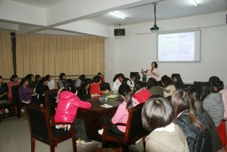 当晚六点 ,由青年志愿者团队主办的我院女性健康讲座在综合楼512 举行,由各系部选派的部分女生代表聆听了讲座,讲座由工会副主席李翠华主持,湖南省养生专家朱平医师主讲。