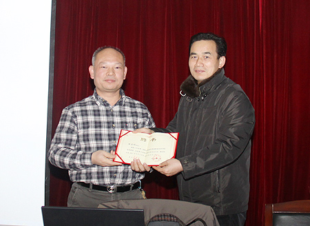 我院聘请陈志刚为客座教授、信息类专业教学指导委员会主任。院长杜祥培为陈志刚颁发了聘书。