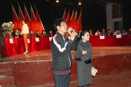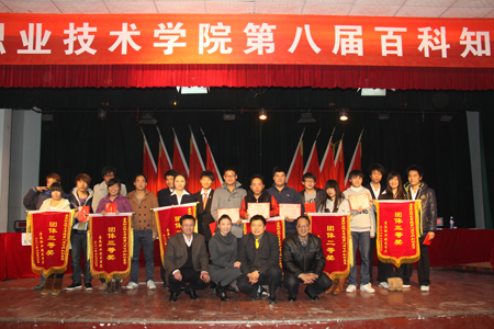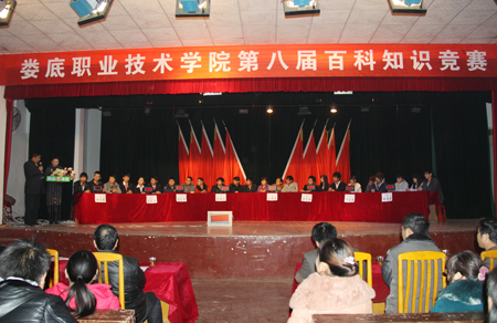 第八届百科知识竞赛由各系部各派出三名精英作为本系部代表队参赛,共8个代表队。比赛题分为必答题、抢答题、风险题三种类型,其中风险题有20分题、40分题、60分题三个档次。延续了往届的成功经验,此次比赛更是精彩不断,各代表队的激烈角逐,观众的热情参与更是让整个礼堂弥漫着紧张与欢乐的气氛。观众互动中,一观众上台演唱中华人民共和国国歌《义勇军进行曲》引得全场阵阵掌声,将比赛推至高潮。