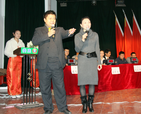 选手们神采飞扬,大秀才艺。一首首歌曲激情洋溢,激烈的掌声、欢呼声接连不断。在互动环节,现场观众上台清唱,积极展现自我。最后,机电系刘盛峰以两首富有民族特色的《赶牲灵》和《姑娘我爱你》一举夺魁;电信系金科、财贸系左嘉歆、外语系于雪梅分获二等奖;财贸系宋文彬、东知才让,建艺系肖化永等获三等奖。凭着扎实的唱功和卓越的舞台表现力,最终刘盛峰,金科,左嘉歆,于雪梅,宋文彬,宋先华,宋导航,肖化永,东知才让,陈佩臻、何妙玲组合荣获本届校园十佳卡拉OK歌手称号。