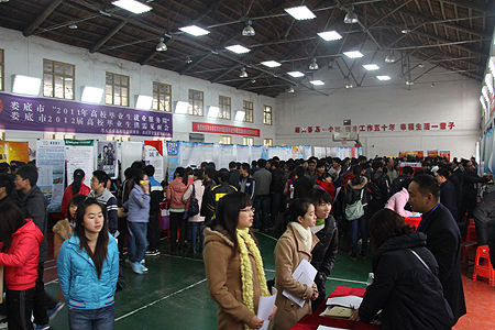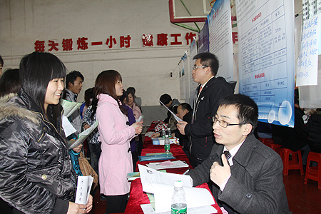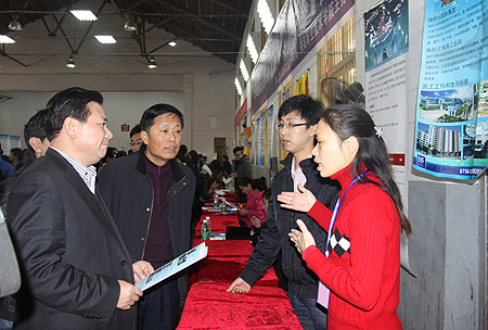 12月18日,我院2011年毕业生供需见面会在室内球场隆重举行。来自北京、上海、广东、浙江等十几个省市以及湖南本地的120余家企事业单位前来现场纳贤,我院2012届毕业生2000多人参加了招聘会。此次招聘会由我院与娄底市人力资源和社会保障局联合举办,副市长鄢福初、人力资源和社会保障局局长郭国林、副局长肖卫龙、教育局局长封旺洲、副局长张怡南及相关单位领导亲临现场指导。院党委书记陈立楚、副院长刘自斌、袁其谦及招生就业处处长朱存斋、副处长王少英等陪同视察并作汇报。鄢福初充分肯定了我院毕业生供需见面会的筹备工作,认为我院的招生就业工作措施得力,体现了国家骨干高职院校的风范。