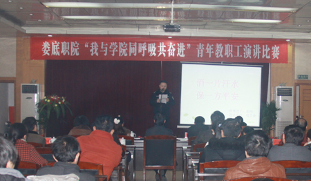 12月29日,由院组织部、院团委联合举办的“我与学院同呼吸,共奋进”青年教职工主题演讲比赛在主教学楼报告厅隆重举行。院领导陈立楚、杜祥培、周意坚、刘自斌、袁其谦、邹松建、曾国基、郭广军、李天仁、向右铭以及各处室系部负责人、教职工代表观看了比赛。娄底市演讲艺术家协会主席袁送荣,国家级普通话测试员李坚,国家级普通话测试员、娄底市演讲艺术家协会理事、我院副教授刘轶中,普通话测试员、我院副教授夏高彦,普通话测试员、我院副教授钟卫红担任大赛评委。