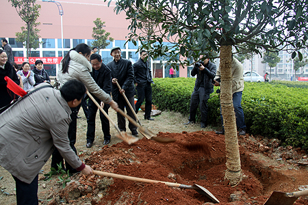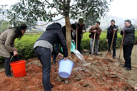 3月16日,我院(原娄底供销学校)计统十班同学举行毕业二十周年聚会,并为我院捐赠两棵桂花树以表对学院栽培的深深感恩。当年恩师李晃、罗如华、吴丽娟、贺汉雄与学生们一齐为树木培土、浇水,共叙往日师生情谊。(李莉)