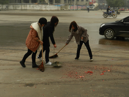 同学们根据这一目标,开始身着清洁工人黄马褂,手拿扫帚、簸箕,把街道的垃圾一一清扫。由于众多垃圾在死角,有的同学甚至用自己的双手拾起垃圾,装入随身带的垃圾袋。一片片的果皮纸屑,一滴滴汗水,同学们认真的打扫着。一路上,伴随着众多赞赏的目光。