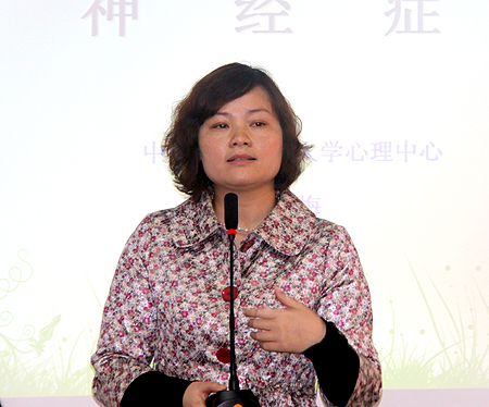 讲座中,袁教授以“神经症”为主题,分析了神经症产生的原因,并通过列举生活中发生的各类“神经症”案例,表明当今社会心理疾病存在的普遍性,尤其在在校大学生群体中表现比较明显,她呼吁在座各位应积极识别各类神经症现象,学会预防及治疗的科学方法。随后,袁教授分析讲解了属于神经症范畴内的神经衰弱、焦虑性神经症、抑郁性神经症等各类症状,让与会人员系统、深入地了解了相关症状的本质。最后,她还就心理问题产生后的应对策略和调试方法作了重点强调和指导,鼓励大家培养好的生活习惯、学会心理求助、学会自我调适,学会发现和制造快乐。(黄军)