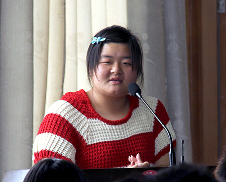 欧芳在会上致辞,她代表院团委对读者协会的成立表示衷心的祝贺,她希望协会能不断完善,加强自身建设,吸引更多读者加入其中。同时,欧芳还提倡读者协会开展丰富多彩的学习活动,提高同学们的阅读与写作能力,并充分发挥协会的桥梁作用,加强图书馆与读者之间的交流,营造出良好的读书氛围。