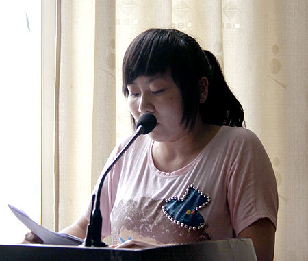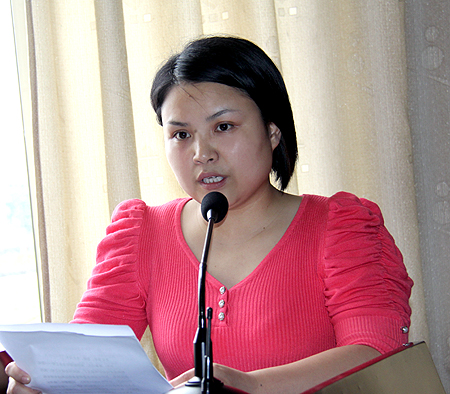 读者协会宣传部部长唐灿宣布读者协会干部名单