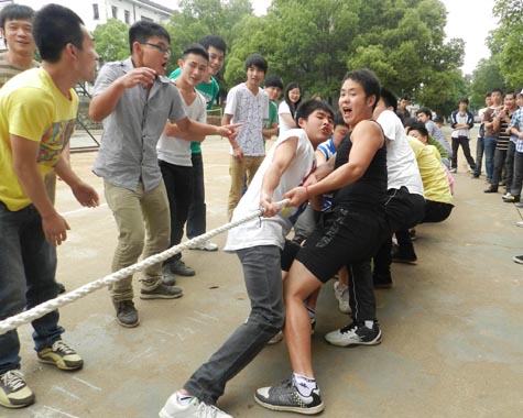 建筑与艺术设计系第六届拔河友谊赛于5月16日中午在科技楼前坪正式开赛。本次比赛采用抽签分组来决定比赛顺序和对手,采取三局两胜、淘汰晋级制。拔河友谊赛旨在促进各年级、班级之间的交流、加强团结协作精神、丰富大学生的校园文化生活。通过此次比赛展现了该系的集体风采和班级团队协助精神,同时增强了班级凝聚力和同学们的集体荣誉感。(文/吴容 图/李宁)