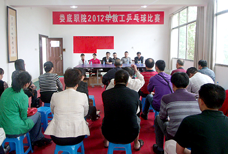 5月24日,由我院乒乓球协会主办的2012年教职工乒乓球比赛闭幕式暨颁奖典礼在院工会乒乓球室内球场举行。工会主席曾国基,工会副主席李新红、李翠华,工会正科级干部贺汉雄,乒乓球协会会长彭林,裁判曾海防及全体参赛选手出席闭幕式。仪式由贺汉雄主持。