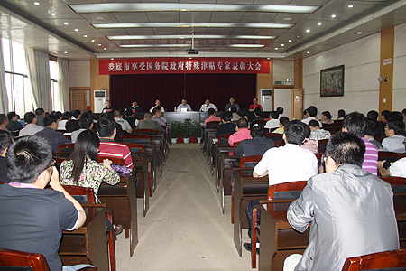 5月23日的主教学楼报告厅,座无虚席,娄底市人民政府在此隆重举行享受国务院政府特殊津贴专家表彰大会。娄底市委常委、常务副市长刘和生,娄底市政府副秘书长罗光才,市委组织部副部长、市人社局局长郭国林,市财政局党组成员、副局长刘絮才,市教育局副局长张怡南,娄底市科技局副局长曾定华,我院院长杜祥培在主席台就坐,我院全体在家院领导、市委组织部、市人社局、教育局领导,各处室系部负责人、教师代表济济一堂,共同见证了这难忘一刻。