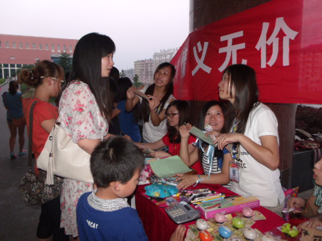 本次活动义卖的物品都是由学生捐献出来的学习用品及其饰品书刊等,虽然东西都不是很贵重,但代表了大家的一份心意。晚7点整,义卖活动正式开始,学生会各组成员都耐心地面对着前来选购的同学们,响亮地喊着义卖的口号“伸出你的手,献出你的爱,铸就爱的长城”。数以百计的同学被爱心义卖所吸引,他们怀着一颗善良、真诚的心选购自己喜欢的物品,为“爱心义卖”活动尽自己的力量,为需要帮助的人献出了自己的爱心。不少路过的老师也对此表示支持并买了一些小饰品。
