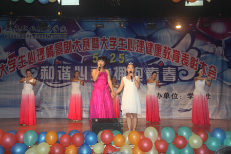 财贸系表演的手语舞《最好的未来》拉开了表彰大会的序幕。随后由各系部推荐的大学生心理情景剧相继上演。演员们在舞台上将一个个角色演绎得非常生动逼真,体现出了学生们对亲情、友情的向往与歌颂,阐述出了“和谐心灵、拥抱青春”的主题,全场掌声不断,气氛温馨感人。穿插的街舞表演也让全场观众欢呼不已。最后上演的是心理健康教育系列活动之――“文化衫设计大赛”成果T台秀。各位设计者携手身着自己设计的文化衫的“模特儿”,在舞台上尽显魅力。