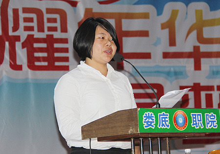 建艺系教授陈翔代表全体教师致辞,希望毕业生们树立终身学习的观念,学会感恩,真诚做人,踏实做事。她动情地说:“无论你们走多远,母校的心始终和你们连在一起,母校期待你们回家的脚步,更期待你们成功的喜讯。”建艺系10工程造价班学生李森作为在校生代表致欢送词,祝愿全体毕业生带着母校的期盼与祝福,踏上新征程,开启人生新的篇章。公管系09文秘班学生王淑英代表全体毕业生发言,向为培育毕业生成才付出了辛勤劳动的母校和老师表示真挚的感谢,并表示将不辜负母校的期望,用奋斗和拼搏为母校增光添彩。