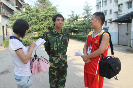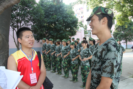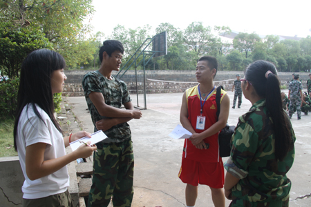 记者来到财贸系12财管班,趁军训休息时间,与钟颖同学聊了起来。她来自四季如春的云南,是个瘦小的女孩子。“食堂饭菜相对比较便宜。一开始我很想家,这边的同学非常热情,让我觉得在娄底职院又有了一个家。我一定会好好珍惜,让大学三年的生活过得充实而有意义。”