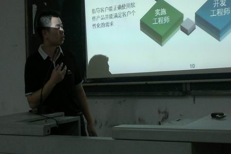 周泽华,深圳市东宝信息技术有限公司实施部经理,曾在制造业、通信业、房地业、软件等多个行业就职,具有丰富的软件开发、实施经验。讲座中,周经理首先对东宝软件公司进行了介绍,给同学们详细说明了软件企业的典型岗位及各个岗位对人才的知识、能力、素质的要求,希望同学们在校提高自已的专业能力、沟通能力、培训能力、学习能力和自我控制能力。讲座最后周经理用自己找工作的经验给同学们在大学三年期间提出了很好的建议。