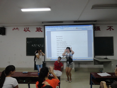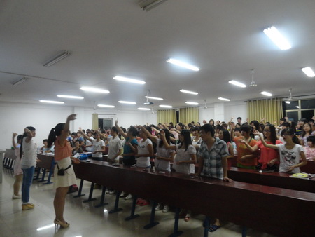 9月6日晚7:30在主教楼610教室举行应用英语专业示范课,系主任刘燕、教学主任肖付良、学工主任贺建良、教研室主任李晓军、周萍、龚文锋、苏燕飞、辅导员杨益、周春红及外语系10、11和12级应用英语专业的学生参加。