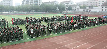 9月14日上午,我院2012级新生军训汇报表演暨新生开学典礼在田径运动场隆重举行。全体在家的院领导、部门负责人、系部主任、总支书记、学工主任在主席台就座。2012级全体新生参加典礼。典礼由副院长刘自斌主持。