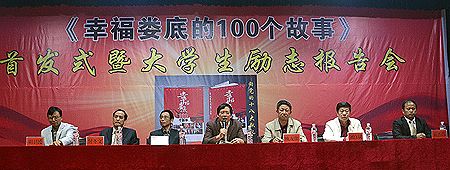 该书的两位主人公付冬文和胡卫民当晚为我院学生作励志报告。付冬文是旅游卫视《美味人生》栏目总制片人、鑫奇集团董事长。2003年他带着不足1万元的启动资金来到广东创业,从燃气灶项目入手,经过潜心研究,发明了节能灶、侧吸烟机,成功申请多项专利,2008年鑫奇喜获中国驰名商标,2009年,公司年销售额达2.8亿人民币,专卖店近3000家,创造了中国的创业神话。付冬文被评中国优秀创新企业家、全国十大创业之星、中国百名行业创新杰出金像奖。胡为民是娄底市中心医院健康管理中心主任、心血管内科副主任医师。他只开对症药,不开高价药,坚持用最少的钱治好病,随喊随到为患者提供上门服务,利用周末义诊、社区讲座、网络24小时问诊等方式当好老百姓的“健康大管家”,被称为“摩托医生”、“赤脚医师”、“雷锋式医生”,更被人们称为“医界的良心、人民的儿子”。他们两人结合自身的亲身经历,以真实的事例,真实的感情,平实的娓娓道来,师生们听后受益匪浅。