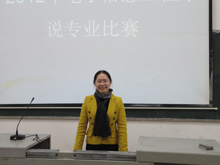 按照教务处《关于举办2012年度说专业竞赛暨第八届教师教学比武的通知》精神的要求,11月18日电信系在主教学楼319举行了说专业竞赛活动。此次竞赛聘请了教务处和督导团的领导与系部领导一起担任评委,经过两个多小时的比赛,网络技术专业朱燕老师获一等奖,动漫设计与制作专业胡小红老师、软件技术专业李新良老师获二等奖,应用电子技术专业刘理云老师、通信专业李和平老师获三等奖。(电信系)