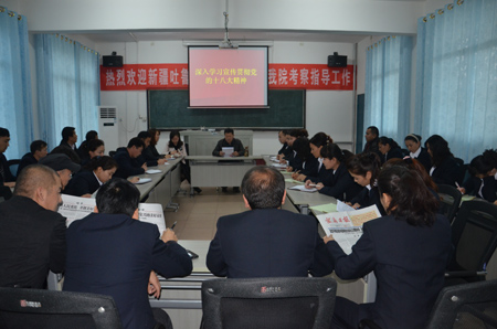 为庆祝党的十八大胜利召开,积极营造学习贯彻十八大精神的浓厚氛围,11月23日,我院新疆班在该班教室召开了十八大精神学习讨论会。院长助理、新疆班领队夏庆国,新疆办副主任邓海燕,新疆班辅导员祖合热•依米提,干警阿不来肯木•艾米都以及全体新疆班学员参加学习。