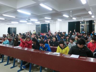 11月20日晚上,电信系在主教学楼310举行“人生理想”演讲比赛,出席比赛的有电信系学工主任李规、辅导员彭继光、李韶辉、梁飞翔,学工干事佘彬以及电信系11级学生代表和2012级全体新生。
