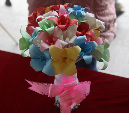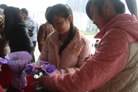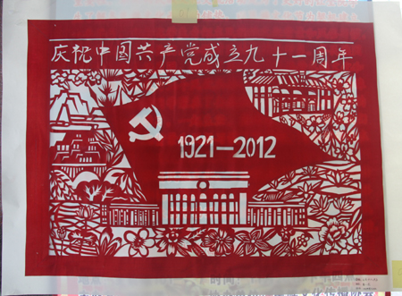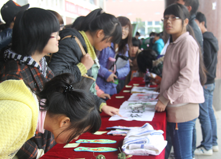 此次评审的方式分为大众评审和专家评审,参赛作品在主教学楼门前进行展览。本次比赛参展的作品形式多样取材广泛,其中包括插花、剪纸、折纸、十字绣以及环保意义十足的手工编织袋,吸引了不少同学驻足观看。其中,剪纸《庆祝中国共产党成立九十一周年》让现场同学啧啧称赞。
