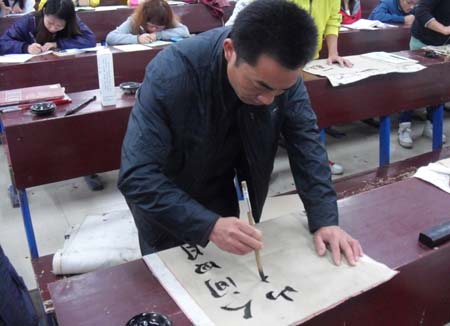 在规定的时间内,书法组的选手们以行云流水之势创作了一批优美的书法作品,美术组的同学用他们得心应手的画笔描绘了一幅又一幅栩栩如生的作品。大赛评委书法协会指导老师罗华斌、会长戴建成、协会教导部部长杨祖谦也亲临比赛现场。此次比赛不仅使广大观众对书法与绘画有了进一步的深刻了解与体会,也使我院校园文化生活品位得到进一步提升。(院团委)