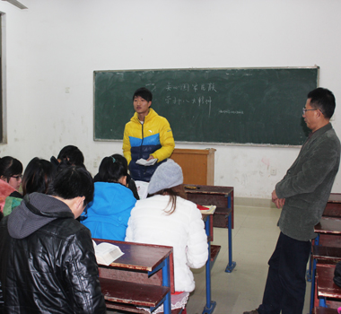 为纪念这一意义非凡的主题班会,七点未到,各班同学均提前来到教室,等待辅导员的到来。其中周仁山老师为进一步增强同学们对十八大的认识,通过PPT的形式,从“什么是十八大、十八大对我们有什么意义、十八大过后我们应该怎么做”等方面做了深入分析。他强调每个同学应关注国家动态,心系国计民生,努力做到造福于社会;他还希望作为大学生的我们应该在学好专业技能的同时,自觉提高自身修养,争取做一个国家的栋梁之才。