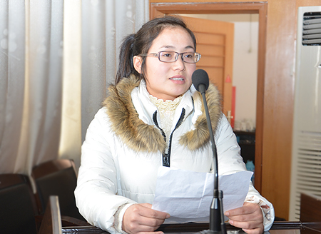 预备党员代表、财贸系2011级市场营销班陈贝丛同学,电信系2011级电子大2班周琴同学先后发言,表达了对党的向往以及入党后争当先进的决心。老党员代表、督导团团长、学院老领导曾慰南更是深情回忆了自己历尽曲折光荣加入中国共产党的心路历程,其“暮年壮怀,老有所为”的雄心让全体与会者感叹不已。